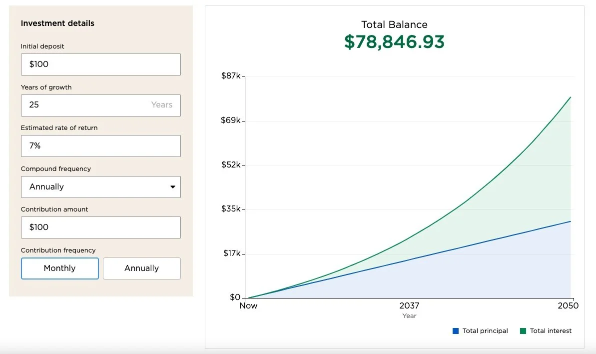 Use a compound interest calculator to see how time is more valuable than money when it comes to investing.