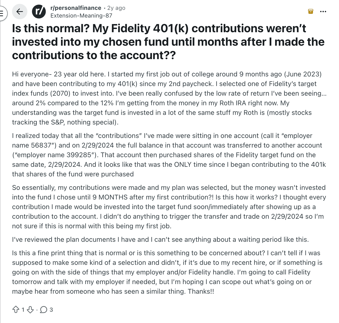 A Reddit poster discovered uninvested funds in a 401(k)
