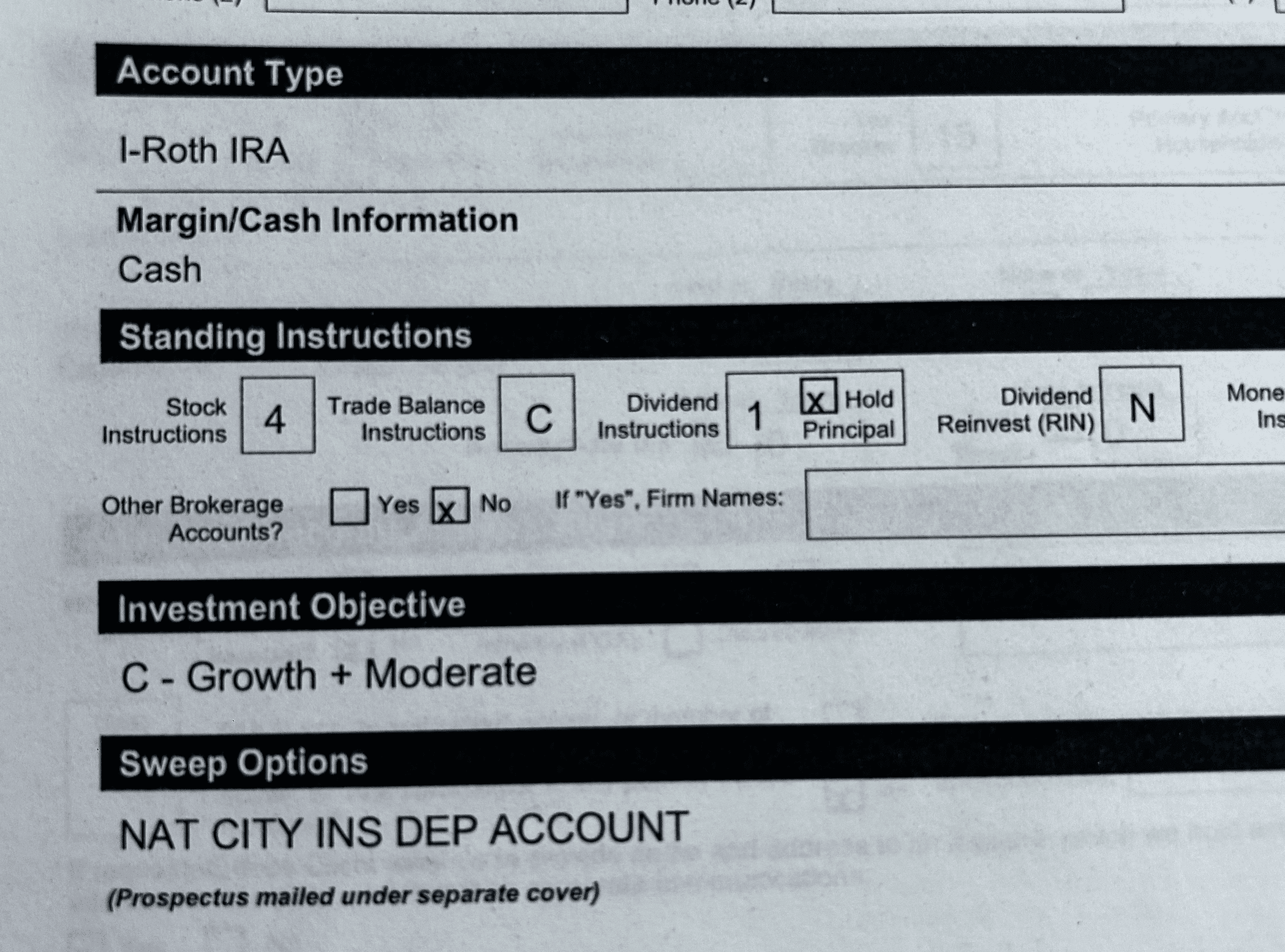 The form that came home from the bank after opening a Roth IRA